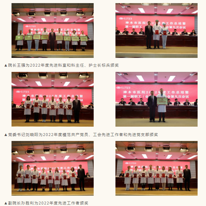 随后,副院长孙胜利宣读了神木市医院2022年度表彰决定,并向受表彰的集体和个人表示热烈的祝贺,号召大家学习先进典型,汲取榜样力量,点亮奋进光芒,不断提振干事创业的志气、骨气、底气,在高质量发展的新征程中惟实励新、勇毅笃行。